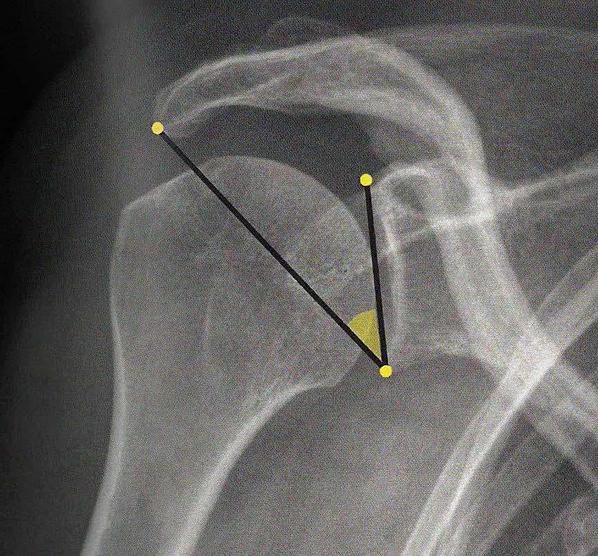 angle CSA < 30° arthrose / > 35° rupture coiffe