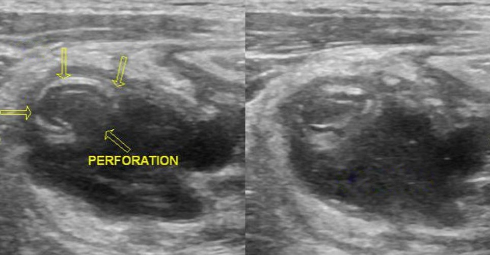 - non compressible, > 6 mm (TDM > 7 mm), hyperhémie, hyperécho autour, 25% stercolithe