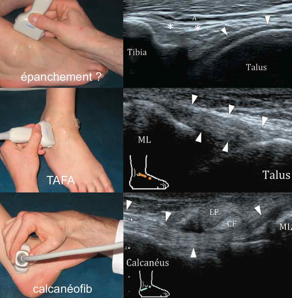 Comblement graisseux hyperéchogène sans particularité du sinus du tarse.