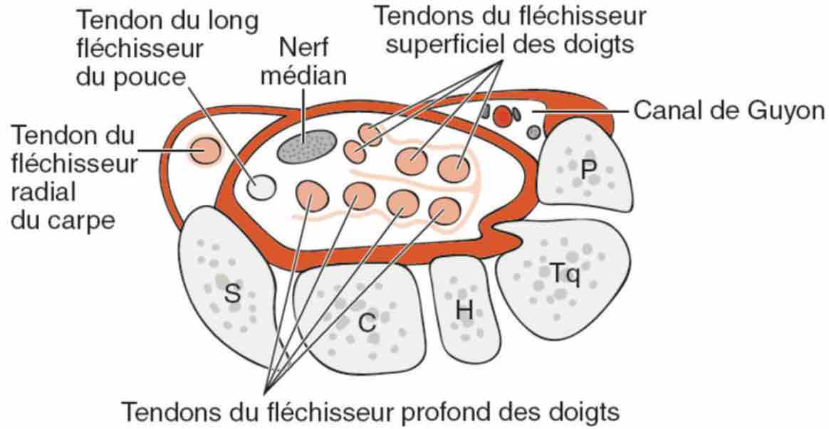 Pas d'anomalie décelable des tendons extenseurs et fléchisseurs.