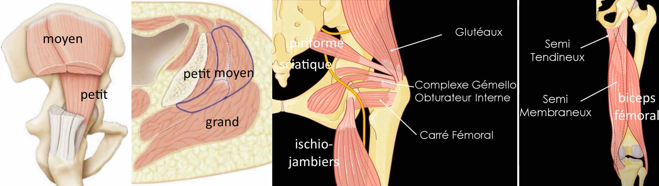 Intégrité des tendons glutéaux et de l'insertion proximale des ischio-jambiers.