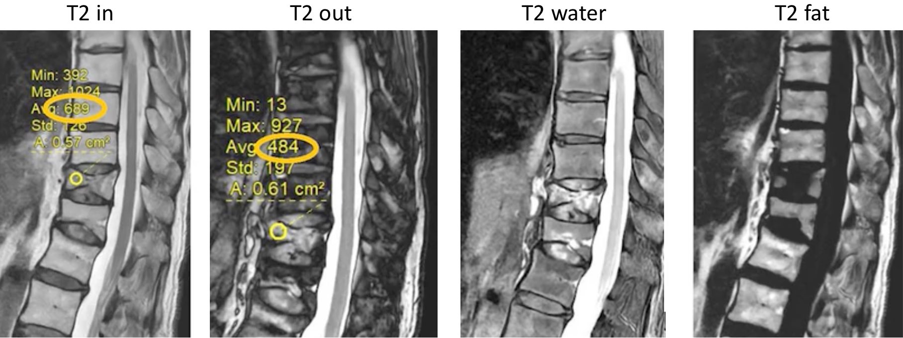T2 Dixon = graisse si chute signal OP > 20% (# œdème d'une lésion tumorale)