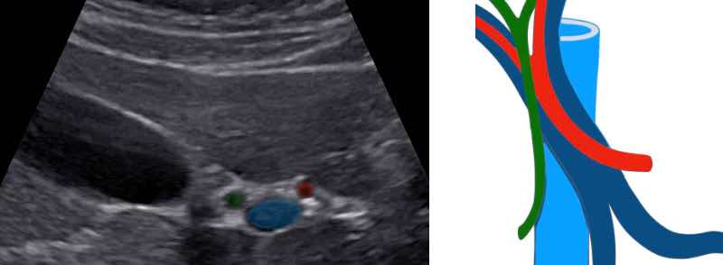 Tronc porte avec flux hépatopète et veines sus-hépatiques hépatofuges.
